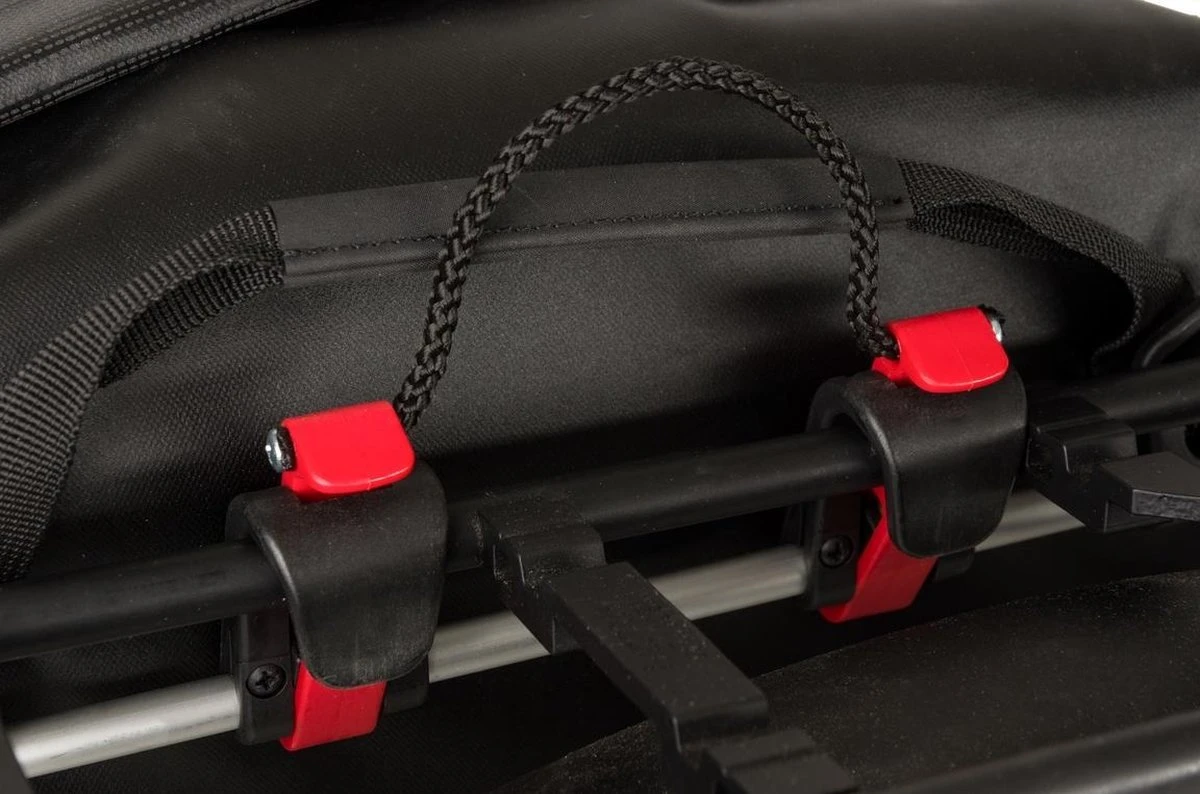 De Shelter Tech waterproof fietstas kan zowel op een voor- als achter drager gemonteerd worden door middel van de KLICKfix Module Rail en verstelbare haak. Dit vormt een solide bevestiging aan de fiets die rammelen of slingeren tegengaat. Aan de buitenzijde van de tas zit een met rits afsluitbaar voorvak, met daarop lussen waaraan andere elementen zoals lichtjes makkelijk bevestigd kunnen worden. Hierdoor is de set naar wens uit te breiden. Om er zeker van te zijn dat de lussen de waterdichtheid van de tas niet in gevaar brengt is er een extra paneel aan de binnenzijde van de tas verwerkt, zodat het bevestigingspunt van de lussen compleet is afgezonderd van de binnenzijde. Aan de binnenzijde van de tas is tevens een gevoerd laptop compartiment verwerkt.