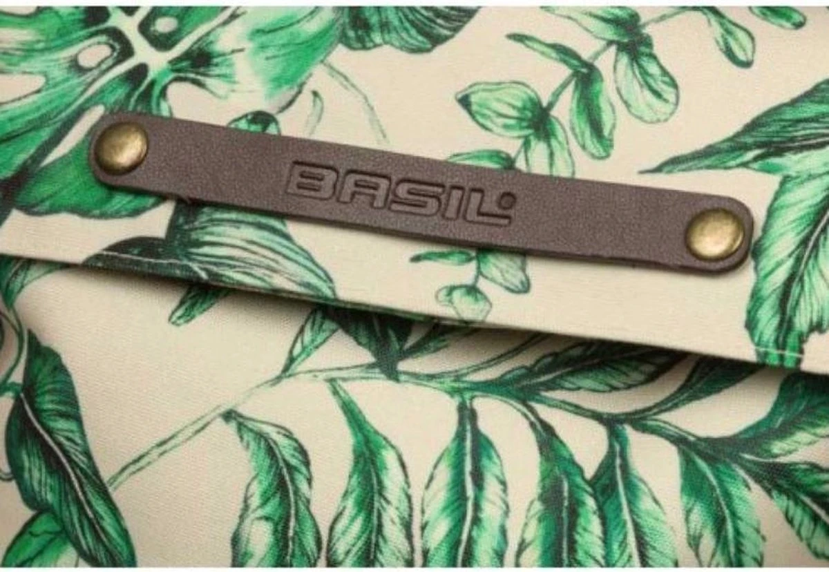 Met de Basil Ever-Green kies je voor een duurzame en bijzondere fietsrugzak! De trendy botanische print op de fietstas is handgeschilderd door de getalenteerde Nederlandse illustrator Meggy Lemmens. En wist je dat de tas gemaakt is 40% gerecycled PET plastic? De waterafstotende stof voelt als katoen aan, maar bevat maar liefst 21 gerecyclede plastic flesjes van 350 ml. Daarnaast heeft de fietstas vegan lederen details en antiek bronzen afwerkingen. Daarmee is de Basil Ever-Green fietsrugzak echt een statement! Deze multifunctionele tas kun je op meerdere manieren dragen. In een handomdraai verander je de tas van een fietsrugzak naar een handtas of een schoudertas. De keuze is aan jou! De beige tas bevestig je gemakkelijk aan je bagagedrager met het Hook-On systeem. De fietsrugzak is zo ontworpen dat je de haken netjes kan verstoppen achter een rits. Niemand die meer ziet dat jouw handtas ook als fietstas wordt gebruikt. De Basil Ever-Green fietsrugzak in de beige kleur heeft een inhoud van 14 tot 19 liter. De waterkerende vouwsluiting is met een rits af te sluiten. Aan de binnenzijde vind je een vakje dat je met een rits afsluit. Aan de voorzijde van de tas zit een extra vak inclusief magneetsluiting. Voor een betere zichtbaarheid bevat de fietstas op alle zijden reflectie. Eigenschappen: In een handomdraai van een fietsrugzak naar handtas of schoudertas te veranderen. Met het Hook-On systeem bevestig je de fietstas gemakkelijk op je bagagedrager. Alle zijden van de tas zijn voorzien van reflectie. Dat maakt je beter zichtbaar. Gemaakt van duurzame materialen. Bijzondere handgeschilderde botanische print.