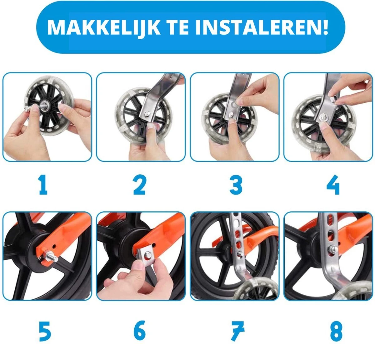 - [Eenvoudig te installeren] – onze steunwielen zijn eenvoudig te installeren en uitgerust met verschillende accessoires. Daarom hoef je de steunwielen alleen met statieven te installeren, zodat je kinderen de fiets veilig kunnen gebruiken.
