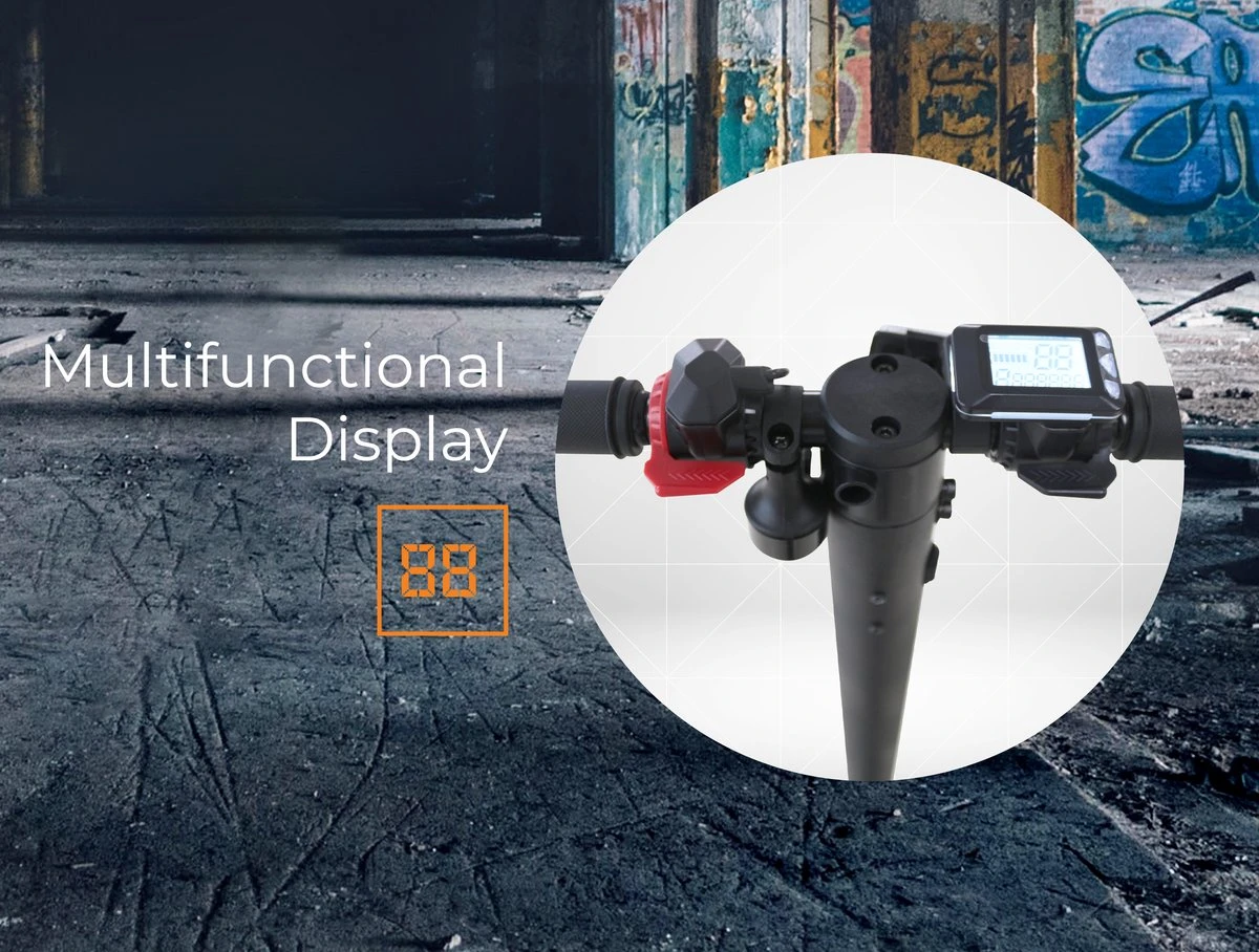 Op het multifunctionele display kun je alle belangrijke dingen aflezen zoals de snelheid die je rijdt, de afgelegde afstand, de status van de batterij en in welke versnelling de step staat.