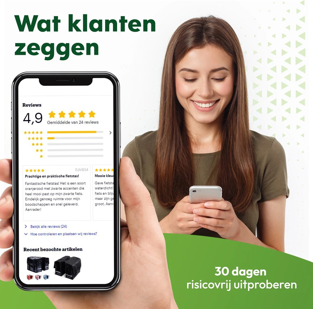 100 % KLANTGARANTIE MET 30 DAGEN BEDENKTIJD EN GRATIS RETOURNEREN