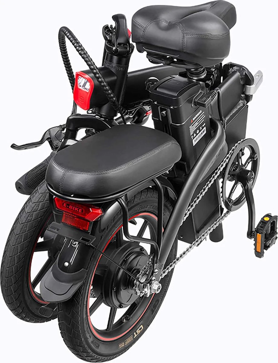 De A5 heeft ook een comfortabele schokabsorberende stoel en schokdempers aan de voorkant voor een soepele, comfortabele rit. De A5 is de enige DYU elektrische fiets met 3-traps vouwmogelijkheid door de stoel te laten zakken, het stuur om te vouwen en vervolgens de fiets letterlijk dubbel te vouwen! Dit geeft u een ultracompacte opslag voor lange afstanden in een auto of opslag in huis/kantoor.