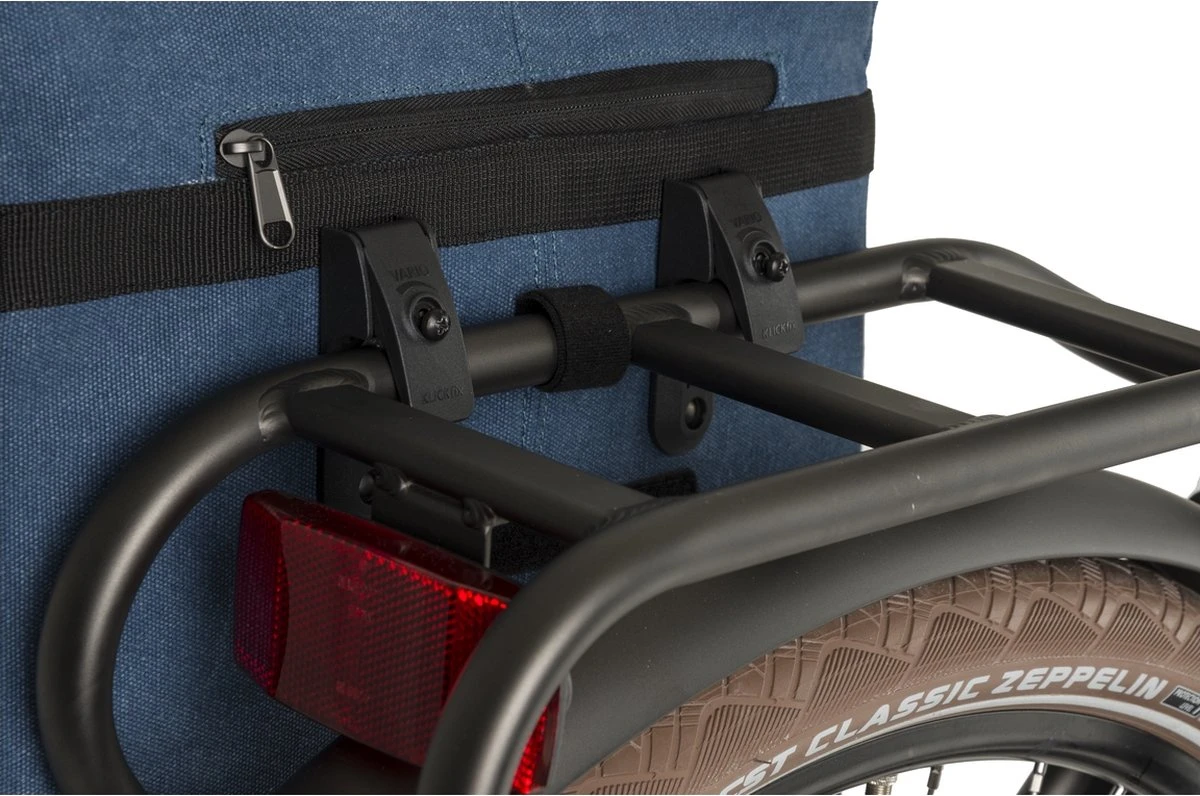 Deze enkele fietstas is ideaal geschikt voor de Elektrische fiets met de accu in de bagagedrager. Daardoor is het niet altijd mogelijk om elke tas goed aan je bagagedrager te houden. De Vario E-haken zijn hier de perfecte oplossing voor. De haken zijn erg dun en passen daardoor makkelijk tussen de drager en de accu. Nu kan je dus ook ongestoord je enkele fietstas meenemen op je Electrische fiets.