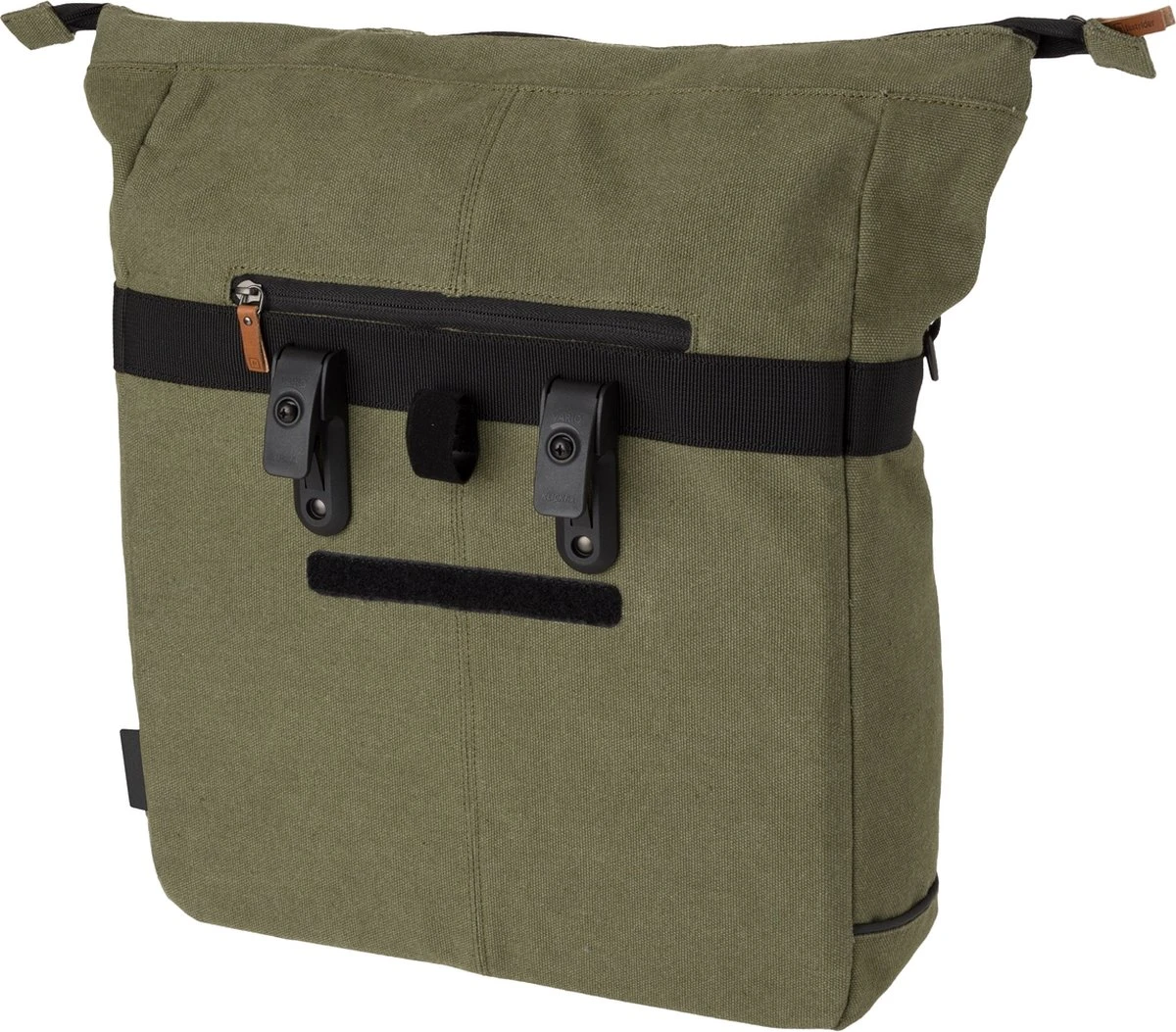De klassiek ogende Celo Enkele Fietstas van FastRider straalt volop stijl uit! Gemaakt van duurzaam en robuust waterafstotend washed canvas zijn je spullen beschermd tegen een spatje regen. De tas is gemakkelijk op elke fiets te bevestigen dankzij de Vario E-Haken, daarnaast is hij heel gemakkelijk als shopper te gebruiken in de winkel dankzij de handvatten. De ruime inhoud van 17 liter is gemakkelijk af te sluiten met een rits en een extra bodemplaat zorgt ervoor dat de tas altijd strak op de fiets bevestigd zit. Verkrijgbaar in verschillende kleuren is er altijd wel eentje die bij jou past!