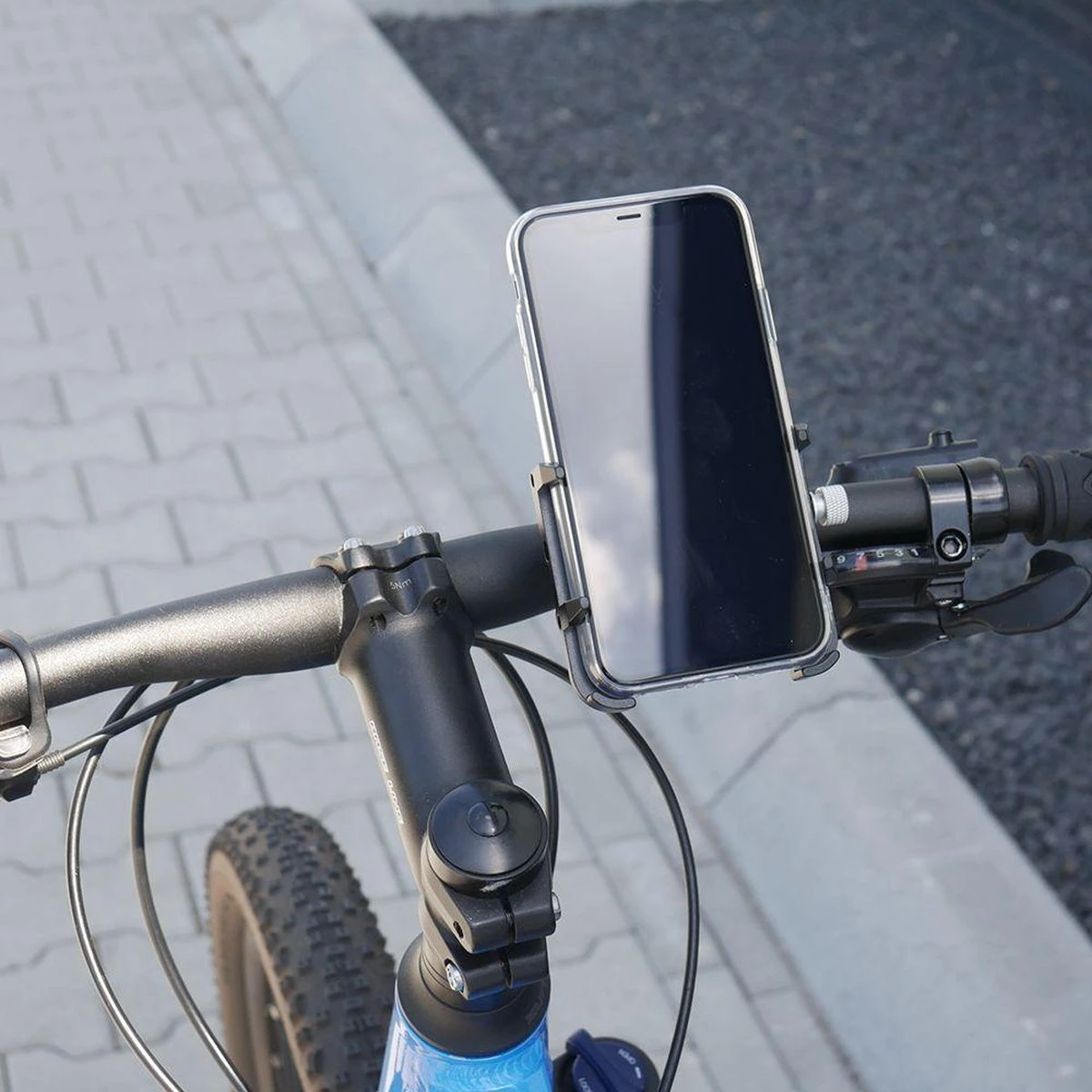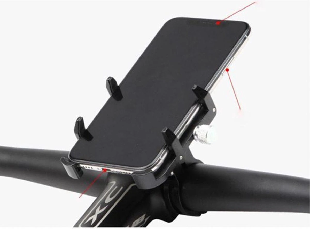 De solide aluminium houder heeft 6 klemmen waarmee de telefoon wordt vastgezet. Draai de grijze draaiknop aan de zijkant aan zodat jouw telefoon goed strak zit. Kussentjes om schade aan jouw telefoon te voorkomen worden bijgeleverd. Deze fietshouder is universeel, waardoor vrijwel alle smartphones met de houder te gebruiken zijn. Elke smartphone tussen de 55 en 100 millimeter breed past in de houder, ook als deze in een hoesje zit. De aluminium klemmen zijn zeer solide met een hoogte van 18 mm. Hierdoor is deze houder zeer geschikt voor het gebruik op een mountainbike.