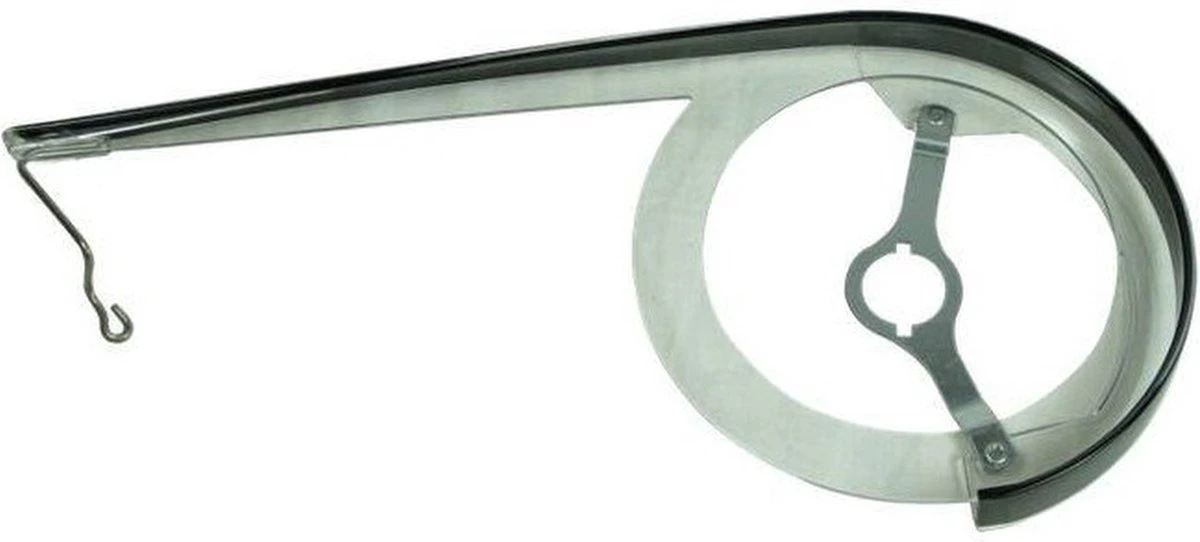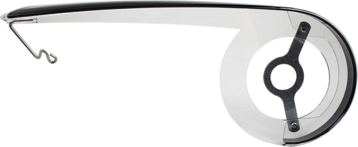 Hesling kettingscherm “Cambio” in presentatieverpakking. Wordt gebruikt op o.a. Koga / Batavus / Sparta. Eigenschappen: 1-vleugelig Kunststof Incl. toebehoren Voor crankbladen tot 48 tanden Ø 22 cm Transparant met zwarte afdekrand