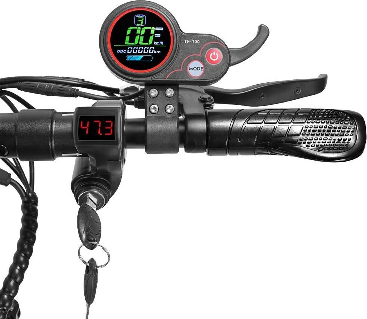 – Drievoudig Remsysteem: De elektrische scooter is uitgerust met dubbele schijfrem op het voorwiel en het achterwiel.