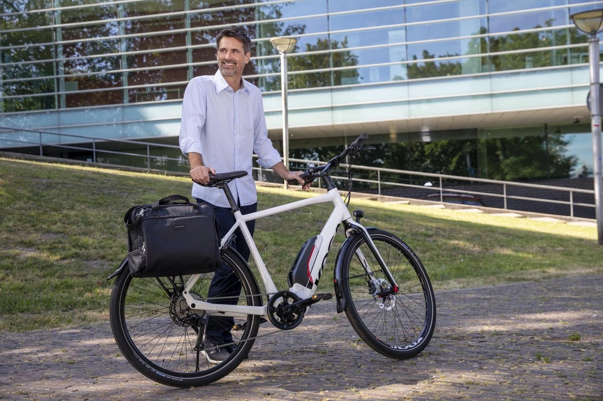 Wil jij jouw laptop of tablet meenemen op de fiets? Deze schoudertas is eenvoudig op de fiets te monteren en weer mee te nemen.