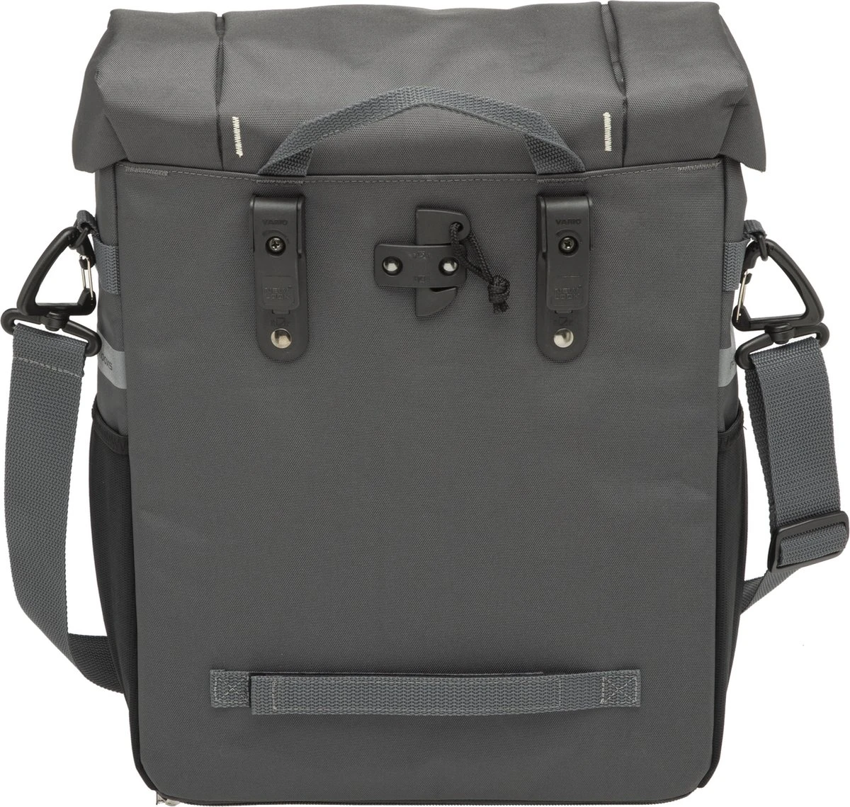 De tas is afgewerkt met reflectie voor extra veiligheid in het donker. Op de zijkanten van de tas zitten bandjes waar je eenvoudig een ledlampje op kunt bevestigen. De schouderband is verstelbaar en afneembaar. Zo voorkom je dat de schouderband tussen de spaken kan komen.