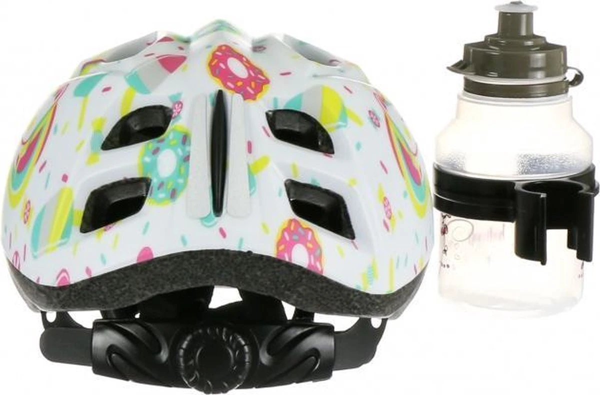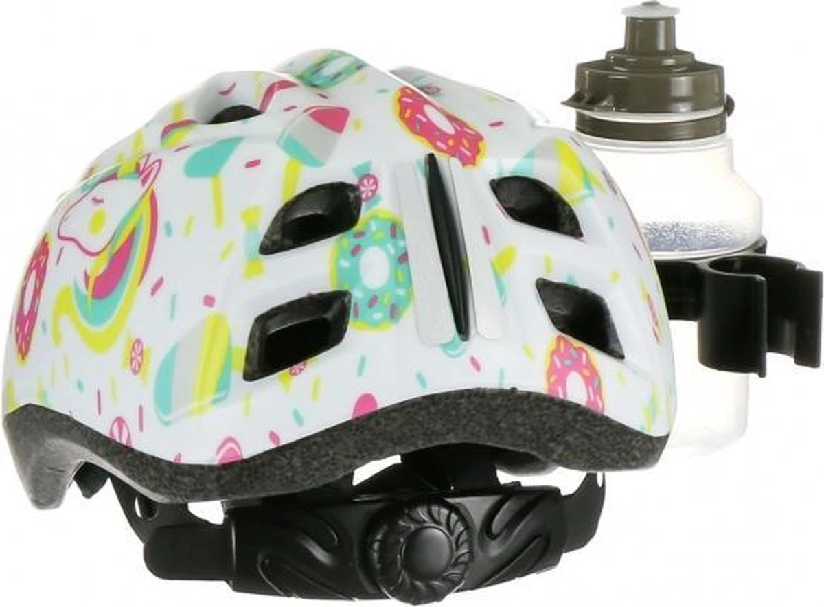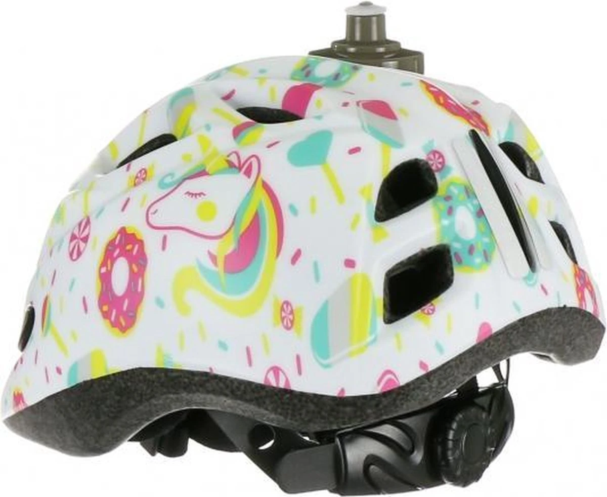 Kinderhelm met 10 ventilatiegaten, makkelijk aanpasbare hoofdring, 2 reflecterende stickers, inmold technologie.