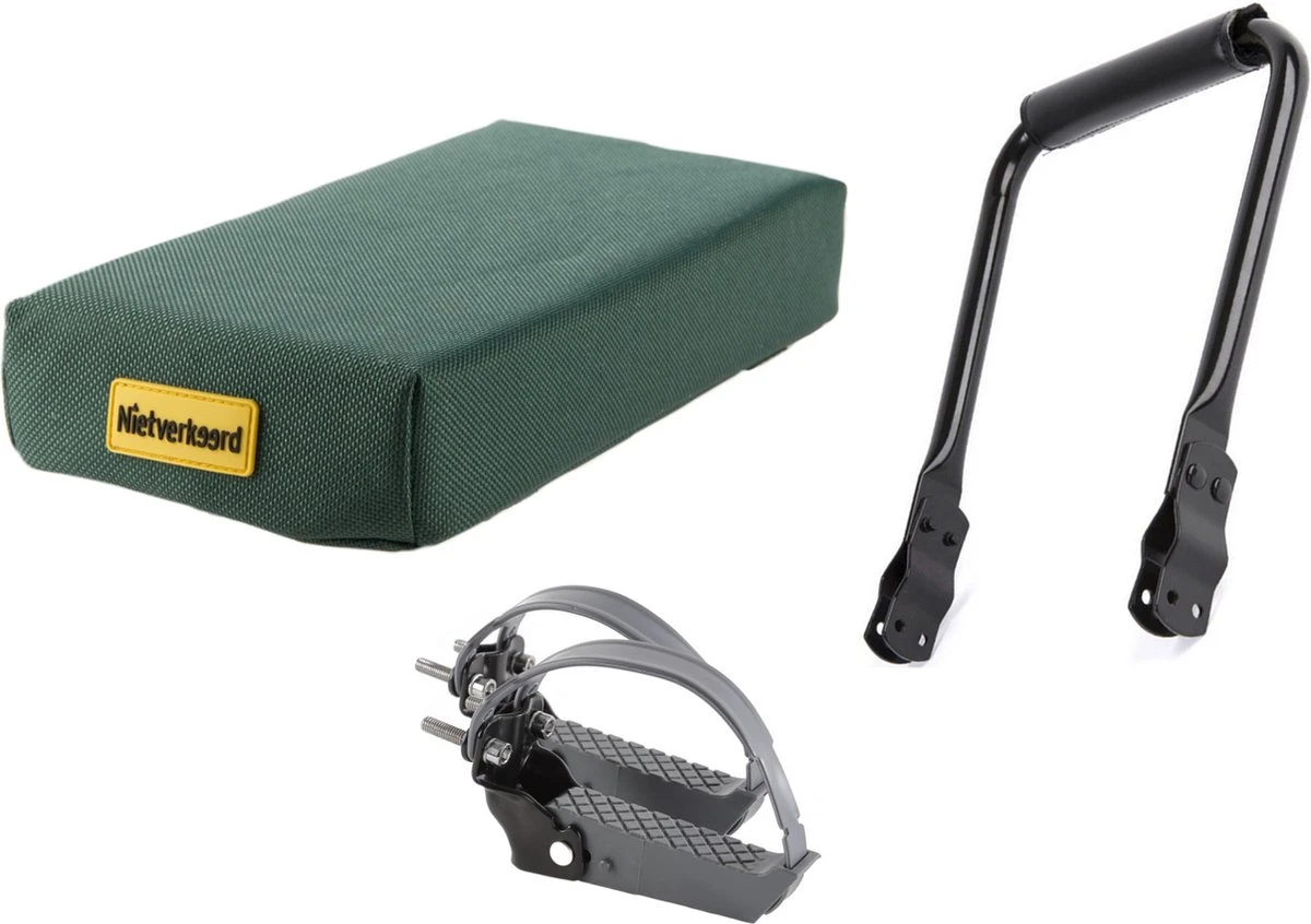 Een unieke deal van Voordeelfiets.nl op Bol.com! Wil je op je fiets een rugsteun, fietskussen en een set met voetsteunen? Bestel dan deze combideal.