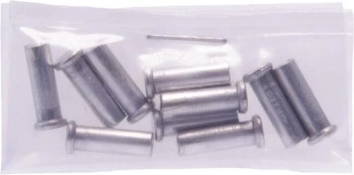 De Simson Binnenkabel eindhuls kan gemonteerd worden aan het einde van diverse binnenkabels. Dit voorkomt het rafelen voor een optimale levensduur van de binnenkabel. De eindhuls kan eenvoudig worden vastgezet aan het uiteinde van de binnenkabel met behulp van een tang. De Simson Binnenkabel eindhulsen worden geleverd per 10 stuks. Productspecificaties: Voorkomt het ravelen Makkelijk te monteren 10 stuks