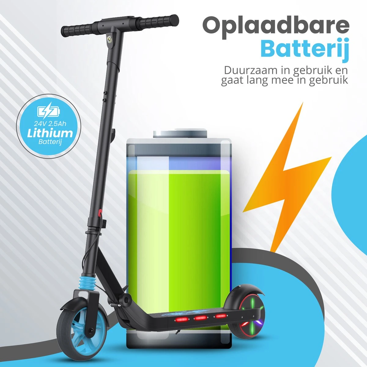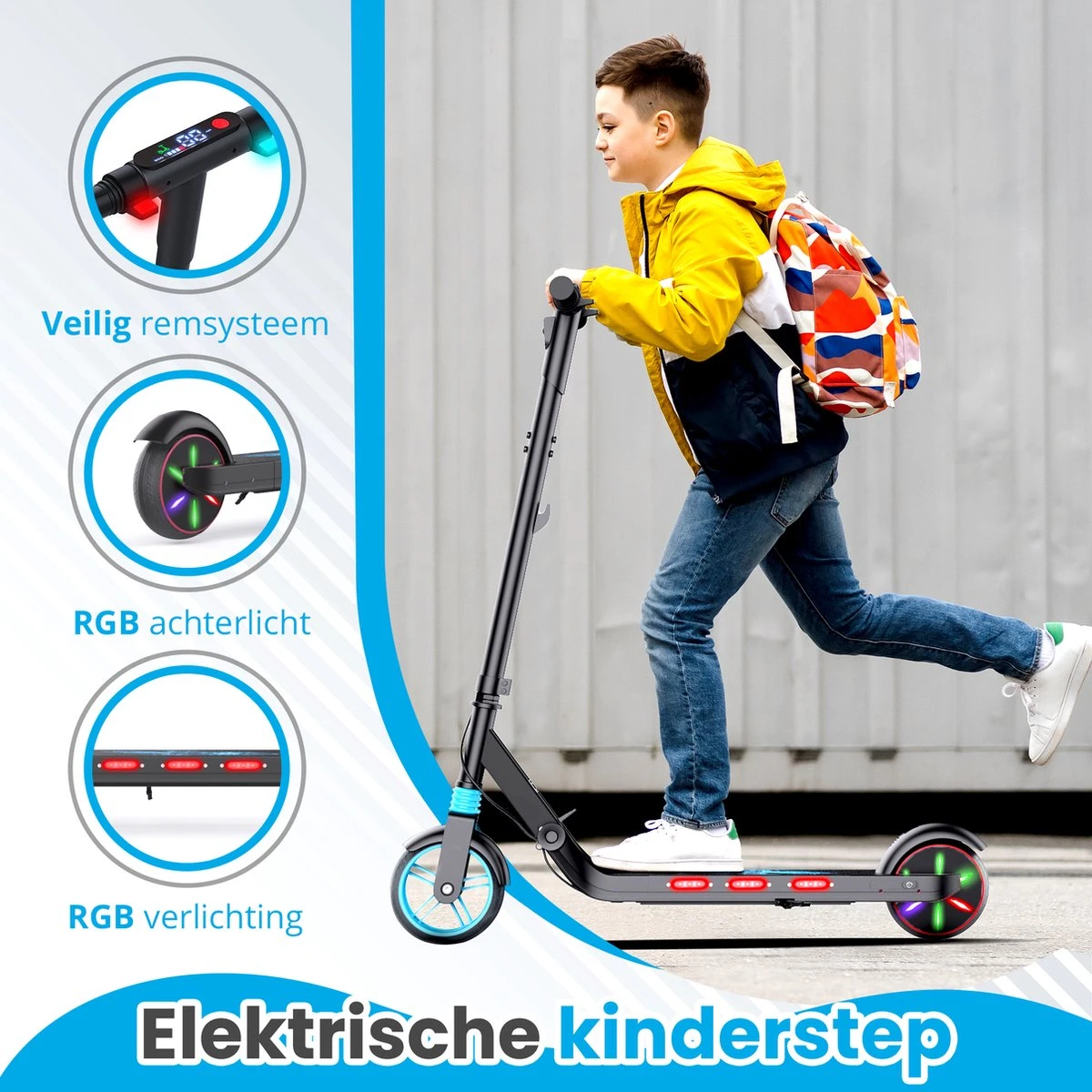 Met een maximalesnelheid van 15km/u, een actieradius van maximaal 20km en leuke LED-lichten aan de onderkant en in het achterwiel, is hij perfect uitgerust voor kinderen.