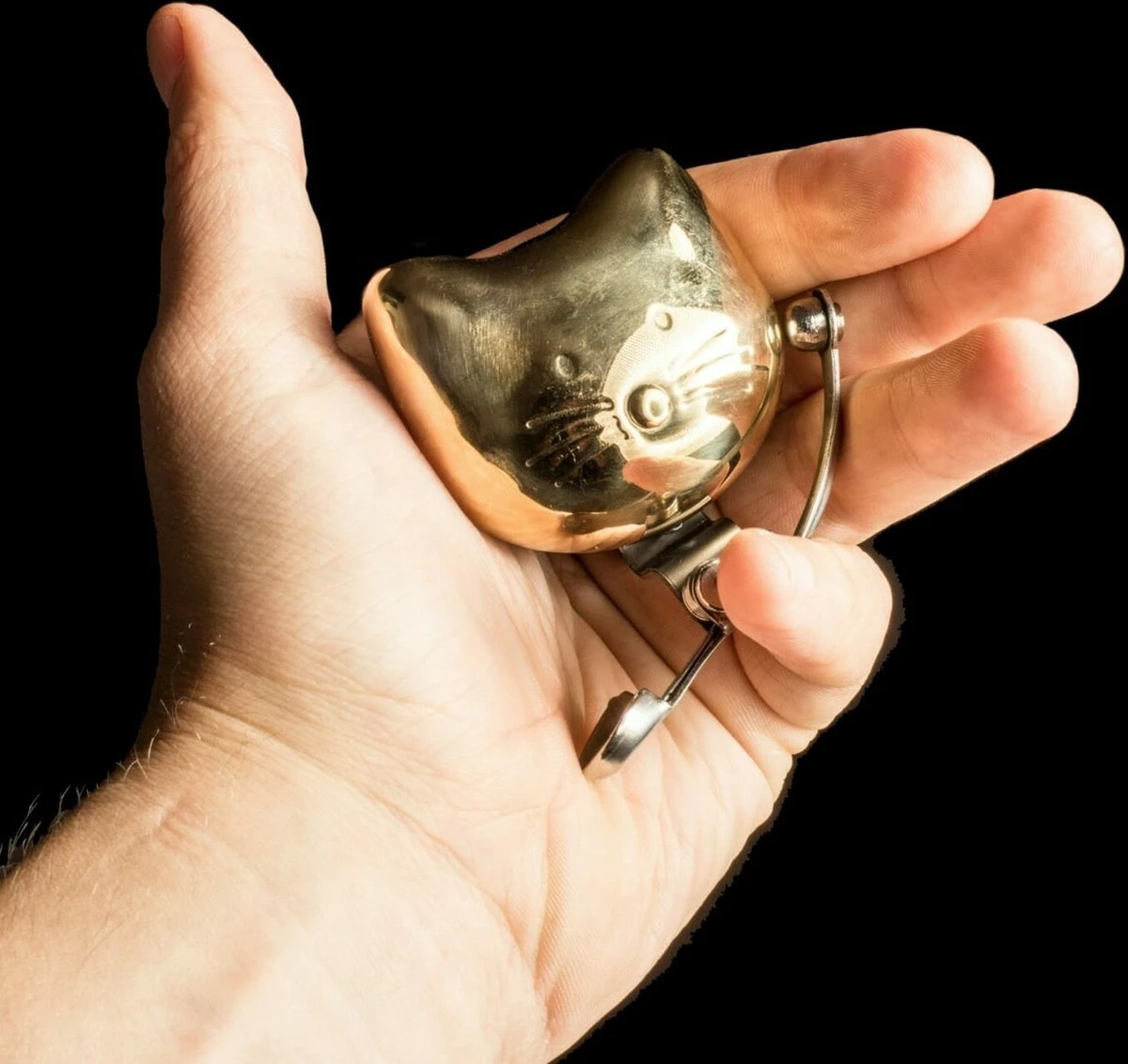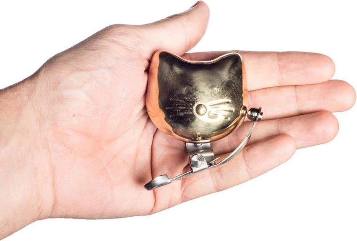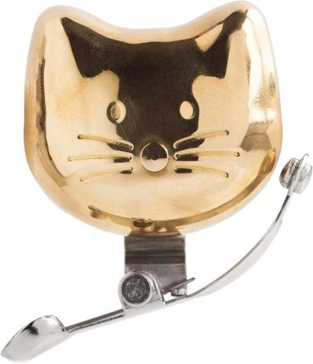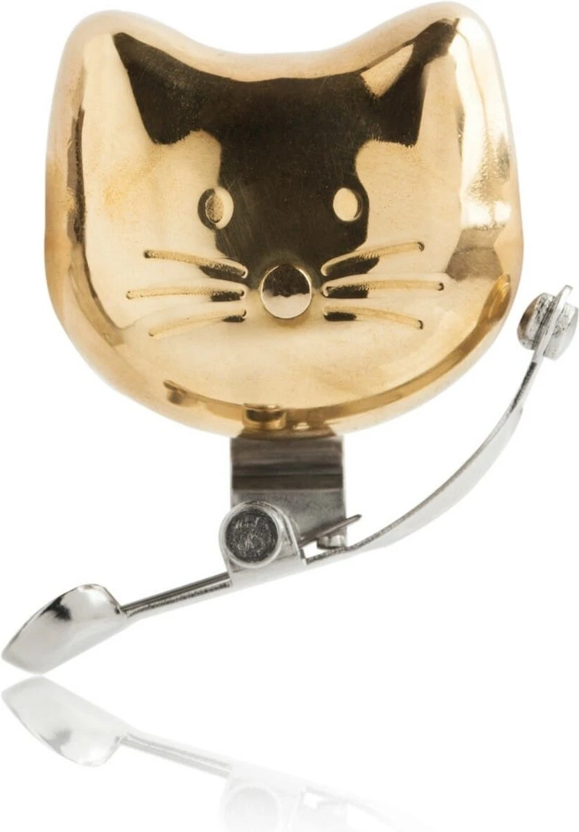 Kat fietsbel van Suck UK. Fietsbel van messing in de vorm van een kop van een kat. Poezenkop fietsbel in gouden kleur. De kat fietsbel maakt gebruik van een messing buitenkant en een springveer die er tegenaan springt. Maakt voldoende geluid om andere fietsers en mensen met honden aan de kant te jagen. Mooie kat fietsbel voor poezenliefhebbers. Afmeting: 5,2 x 4,6 x 4 centimeter.