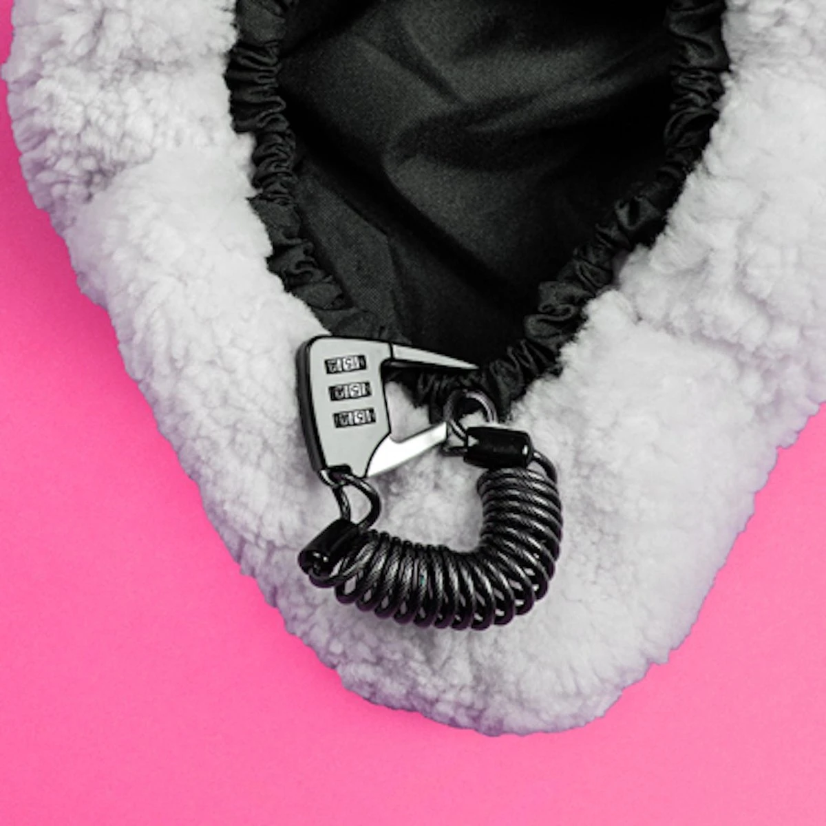 BESCHERMD TEGEN DIEFSTAL – De set bevat een cijferslot en een intrekbare kabel, die onder het fietsstoeltje zijn bevestigd. Zo kunt u de bekleding van de fietsstoel op de fiets laten zitten zonder u zorgen te maken over diefstal.